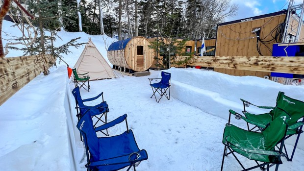 阿寒湖氷上イベント<あいすランド阿寒>にて、3月10日(木)まで開催中の「フィンランド式バレルサウナ」を
