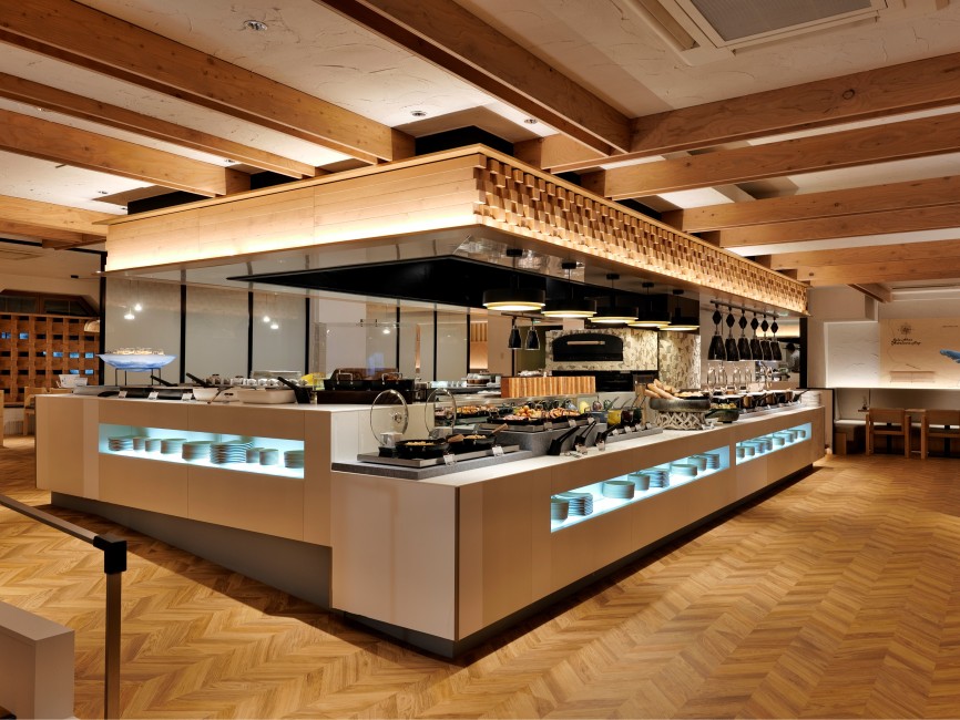 レストランは大自然ならではの肉料理を中心に、地産地消にこだわった多彩なお料理をバイキング形式でご提供いたします。