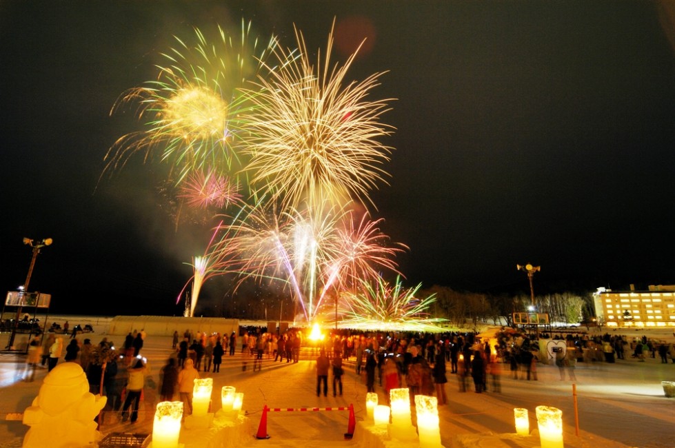 -20℃の氷点下の世界、阿寒湖の氷上で毎夜花火を打ち上げます。