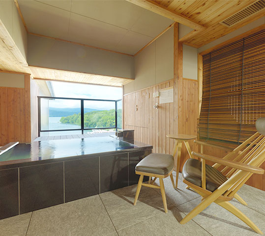 和室と仕切りのない広々としたリラクゼーションルームのお部屋。露天風呂から阿寒の景色を眺め、優しい朝日に照らされて翌日を迎える眠りと目覚めのうれしいお部屋です。